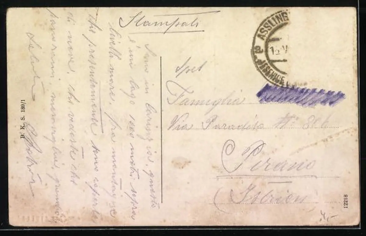 alte Ansichtskarte, gelaufen, Briefmarke entfernt, rückseitig Oberflächenschaden, guter Zustand