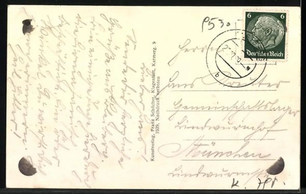 gelaufen 1939, rückseitig Klebe- und Papierreste, guter Zustand
