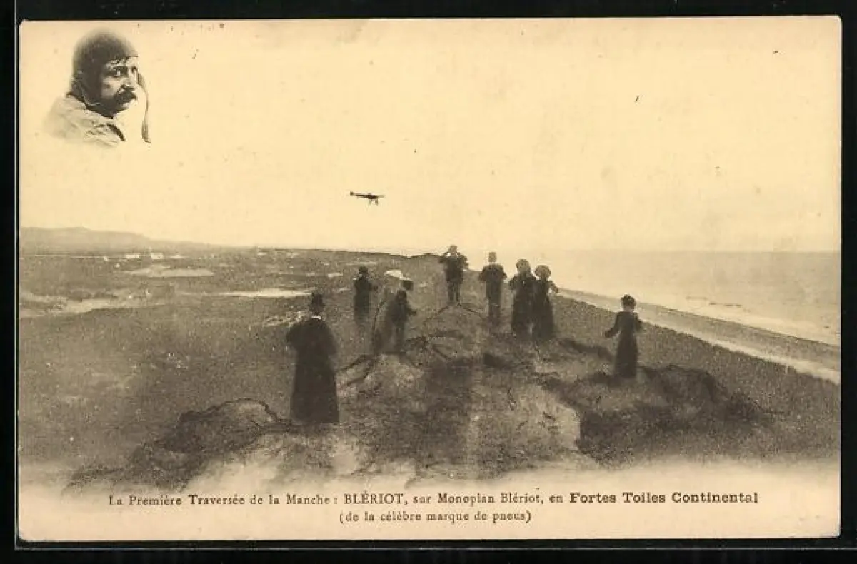 AK Blériot sur Flugzeug Monoplan Blériot, erste Überquerung des Ärmelkanals