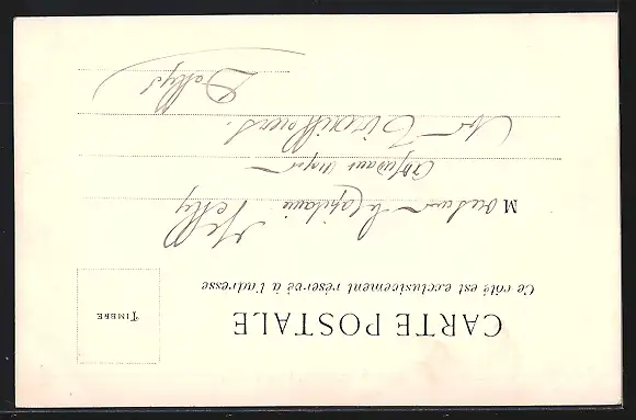 Personenbezogene Daten auf der Rückseite der Karte wurden durch blauen Textmarker unkenntlich gemacht. Die blauen Stellen sind auf die Vorderseite durchgeweicht und wirken sich negativ auf das Postkartenfoto aus