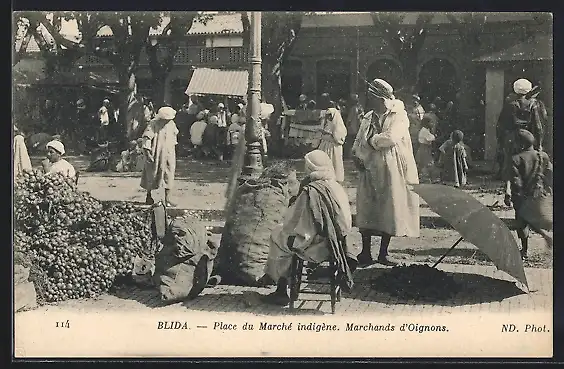 AK Blida, Place du Marché indigène, Merchands d`Oignons