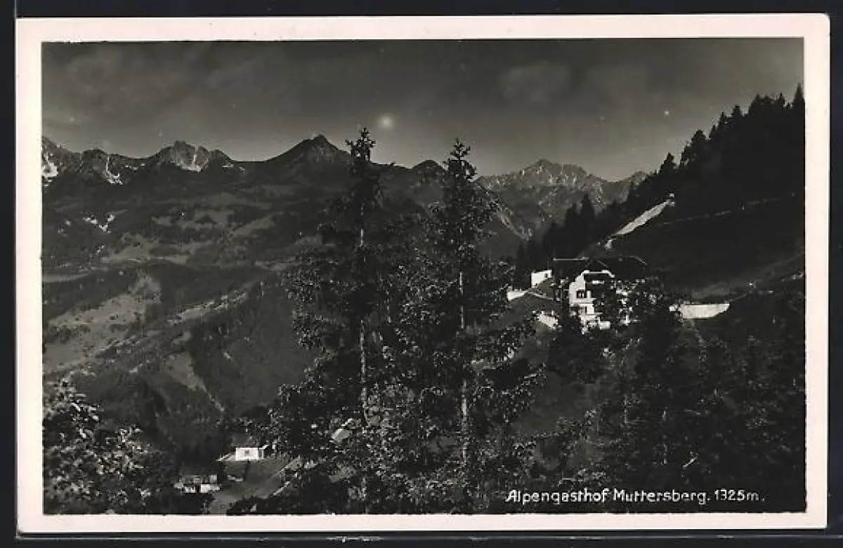 AK Bludenz, Alpengasthof Muttersberg aus der Vogelschau