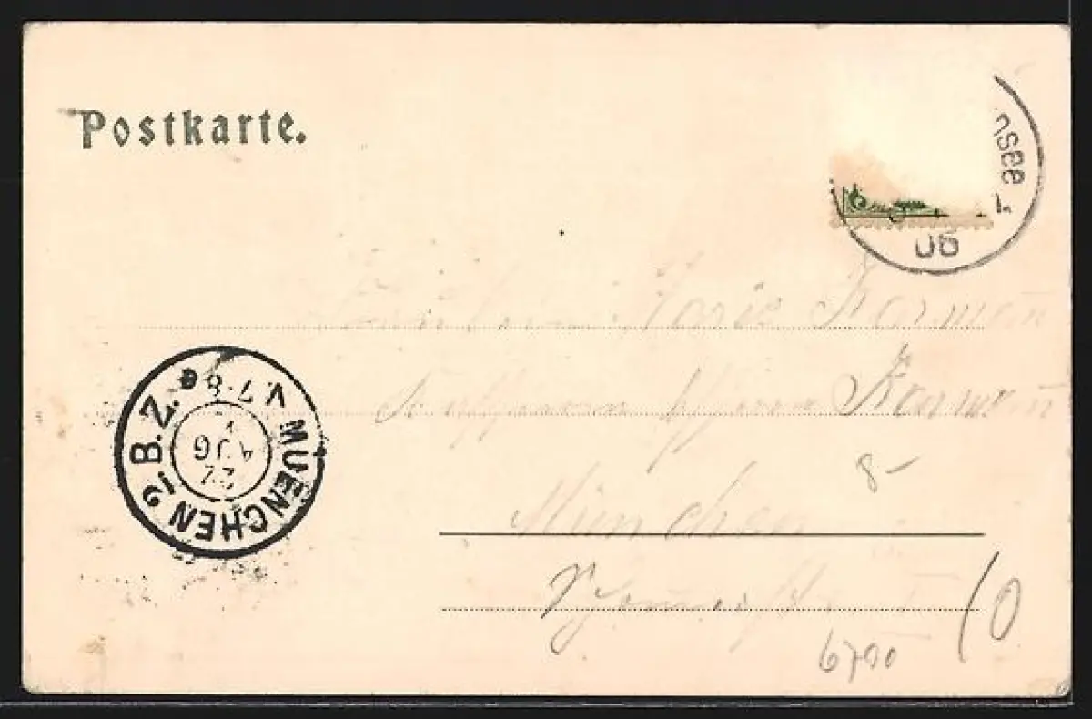 alte Ansichtskarte, gelaufen 1906, Briefmarke entfernt, Eckknick unten links, guter Zustand