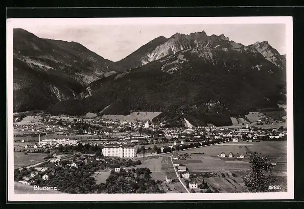 AK Bludenz, Generalansicht der Stadt unter den Bergen