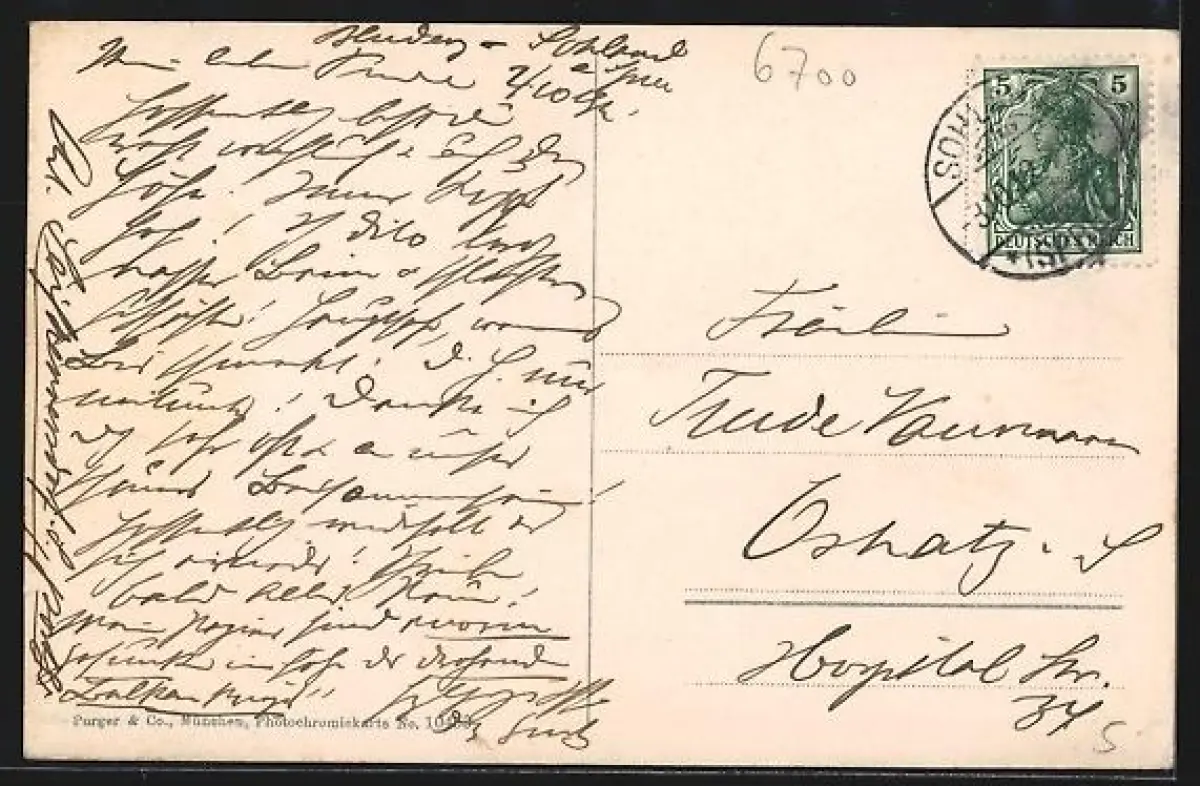 alte Ansichtskarte, gelaufen 1912, minimaler Einriss re. unten, guter Zustand