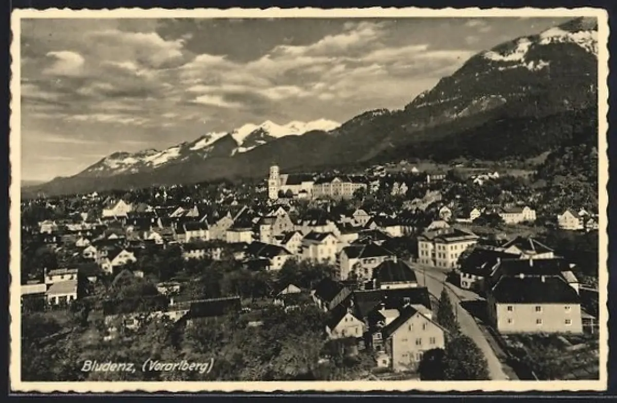 AK Bludenz, Gesamtansicht mit Alpenpanorama