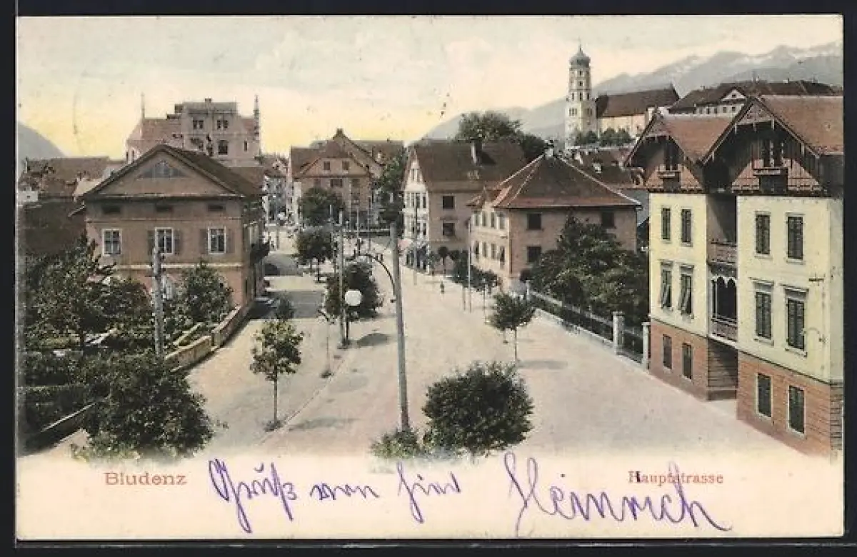 AK Bludenz, Hauptstrasse von oben gesehen