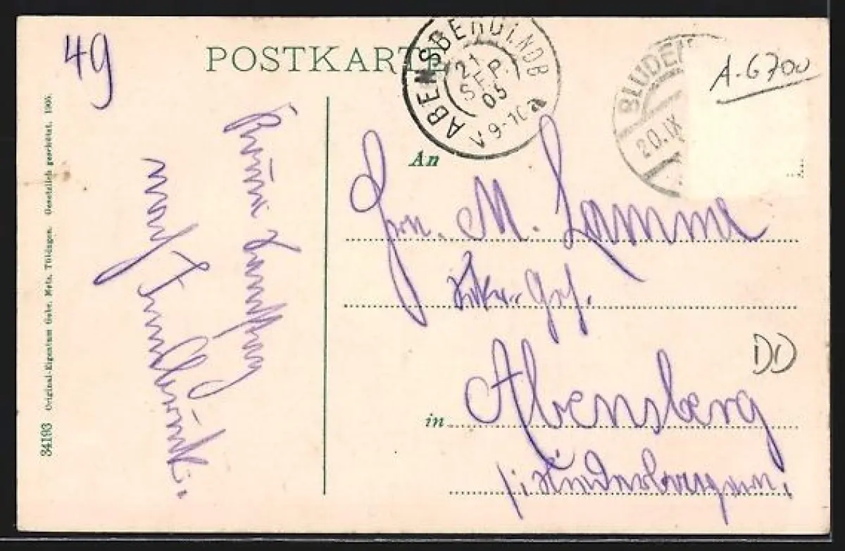 alte Ansichtskarte, gelaufen 1905, Briefmarke entfernt, rückseitig Oberflächenschaden, guter Zustand