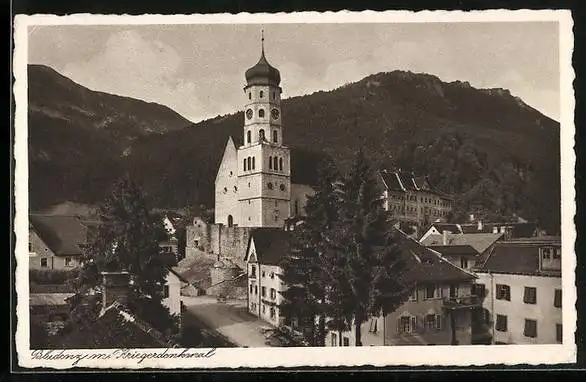 AK Bludenz, Kirche mit Kriegerdenkmal