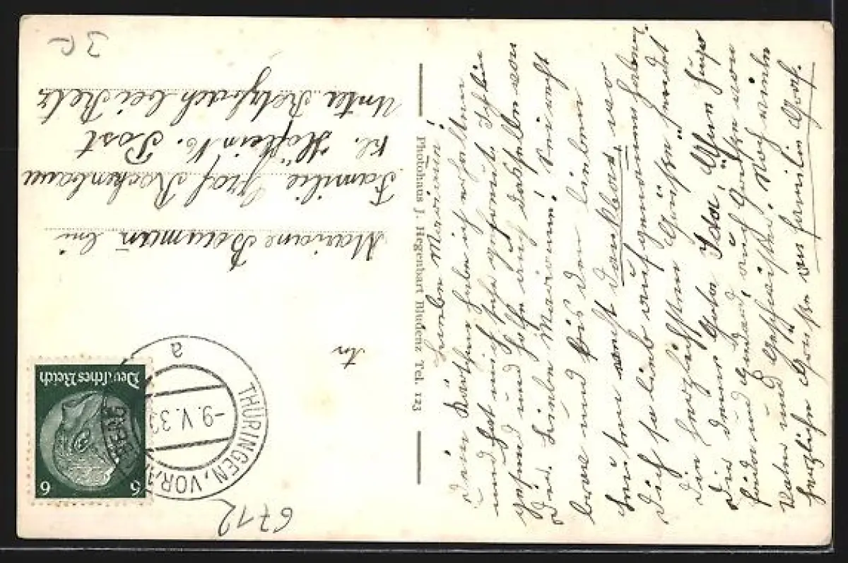 alte Ansichtskarte, gelaufen, Bugspur oben mittig, guter Zustand
