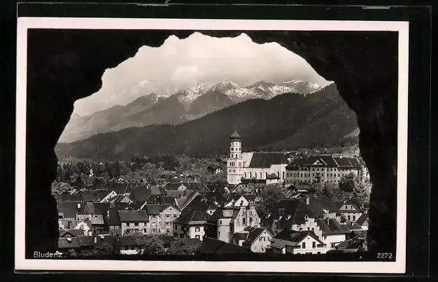 AK Bludenz, Ortsansicht durch einen Bogen gesehen