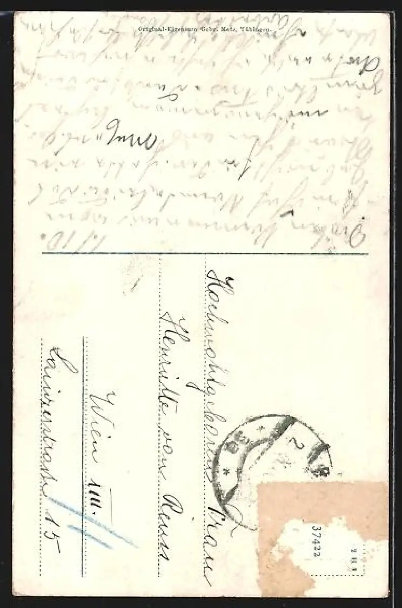 alte Ansichtskarte, gelaufen, Briefmarke entfernt, rückseitig Oberflächenschaden, Eckknick rechts oben, Bugspur links unten