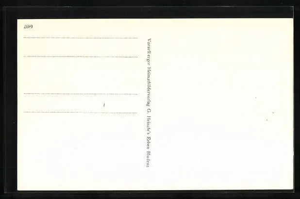 Personenbezogene Daten auf der Rückseite der Karte wurden durch blauen Textmarker unkenntlich gemacht. Die blauen Stellen sind auf die Vorderseite durchgeweicht und wirken sich negativ auf das Postkartenfoto aus