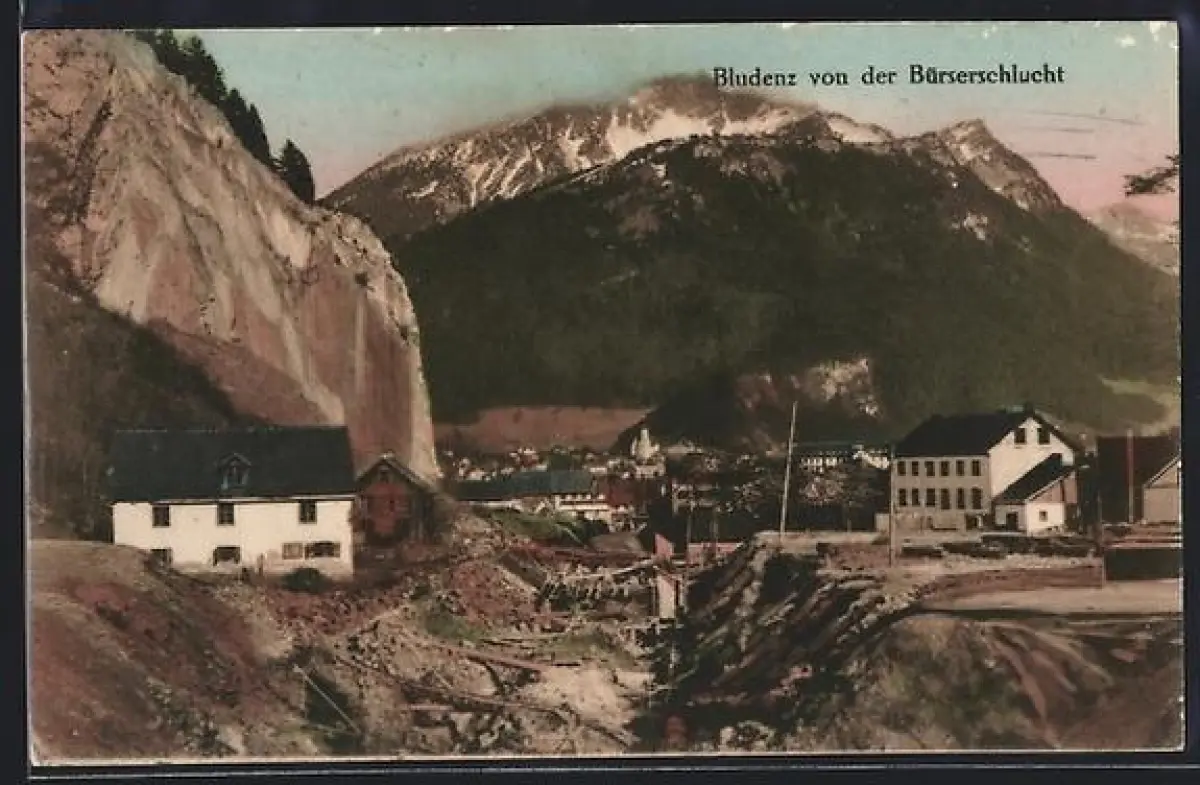 AK Bludenz, Ortsansicht von der Bürserschlucht