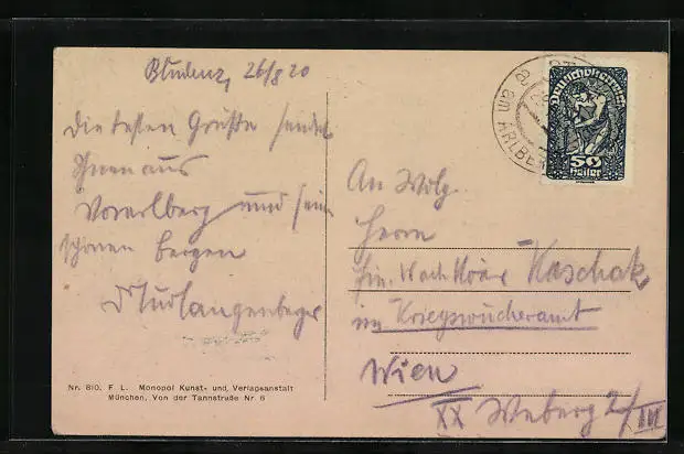 alte Ansichtskarte, gelaufen 1920, Eckknicke re., guter Zustand