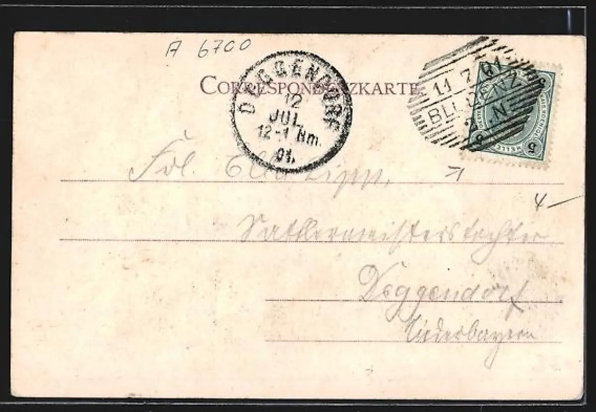 alte Ansichtskarte, gelaufen 1901, Stempelspur, guter Zustand