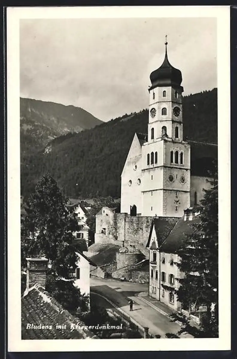 AK Bludenz, Strassenpartie mit Kirche
