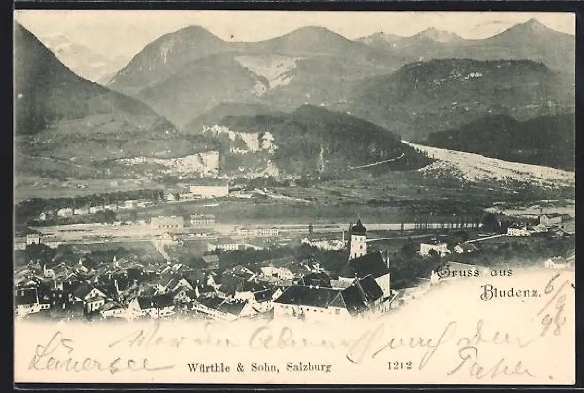 AK Bludenz, Teilansicht des Ortes mit Kirche und Gebirge