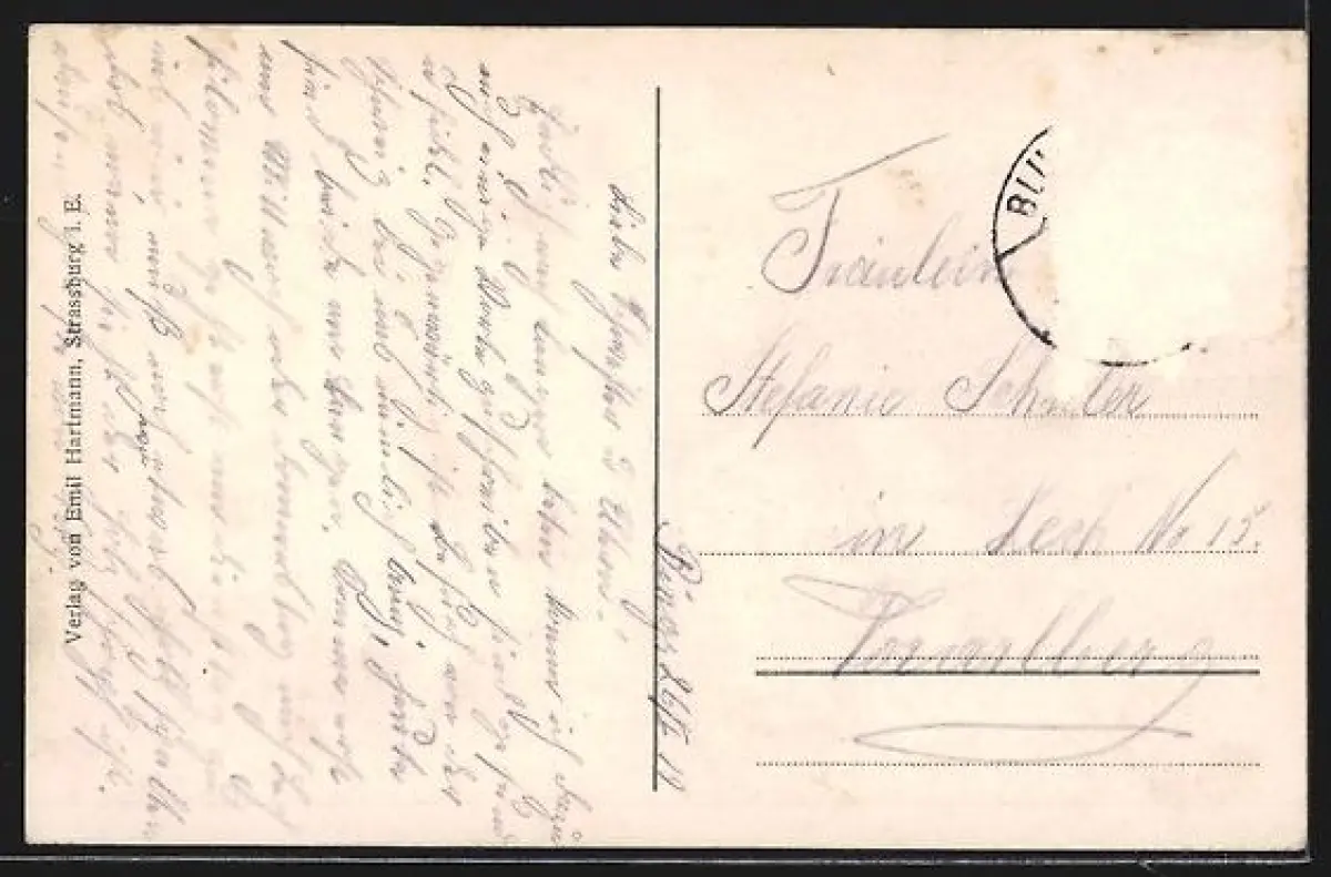 alte Ansichtskarte, gelaufen, Briefmarke entfernt, rückseitig Oberflächenschaden, Bugspur li. oben, guter Zustand