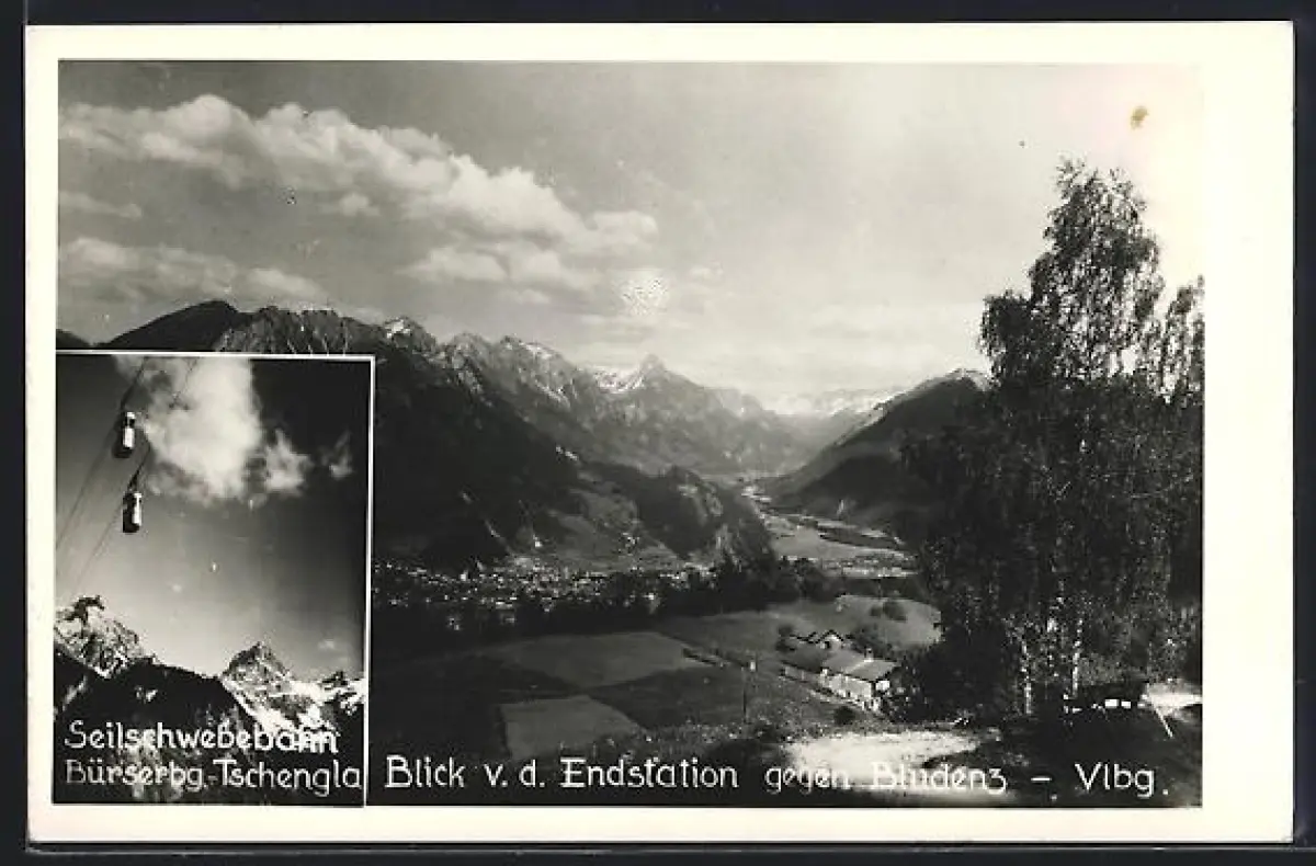 AK Bludenz /Vlbg., Seilschwebebahn Büserbg.-Tschengla, Blick v. d. Endstation