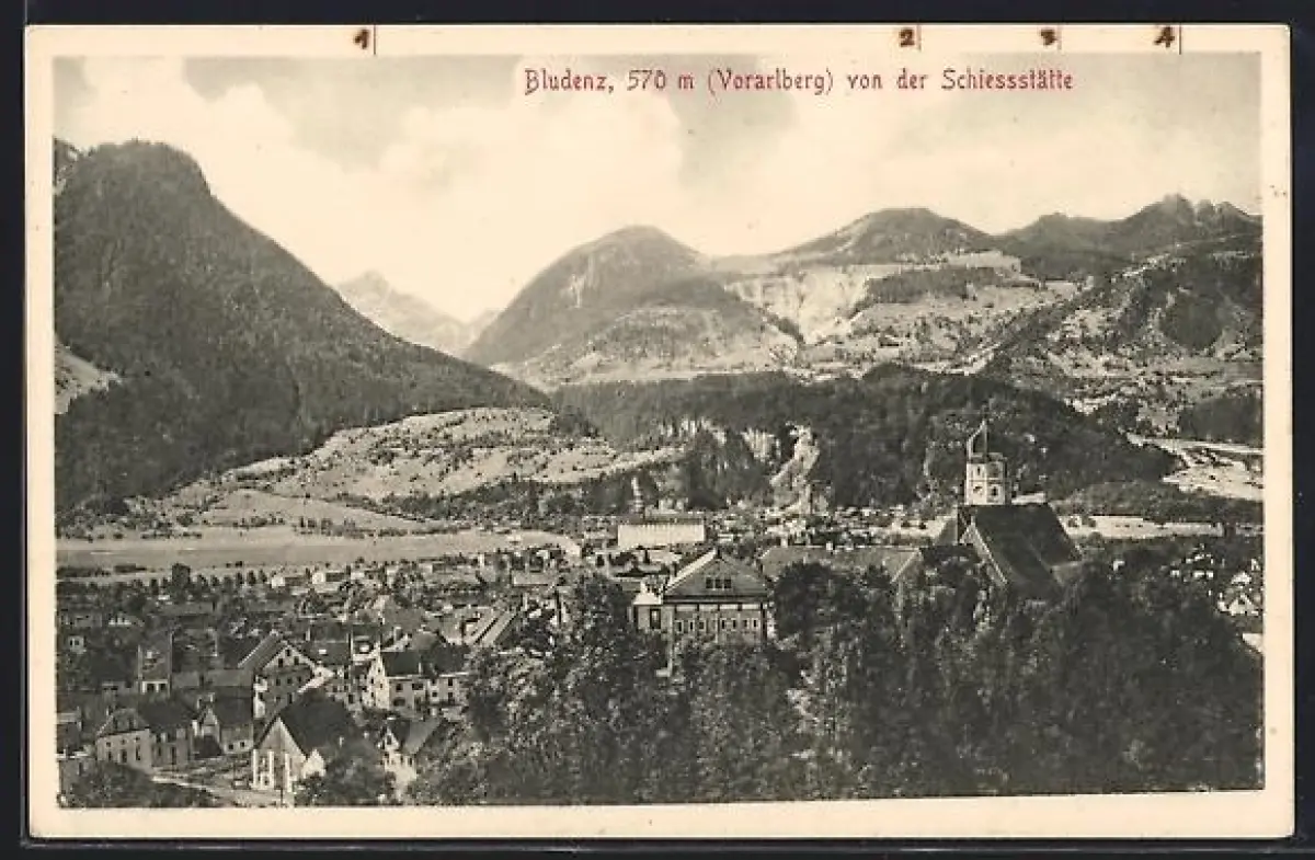 AK Bludenz /Vorarlberg, Ortsansicht von der Schiessstätte aus gesehen