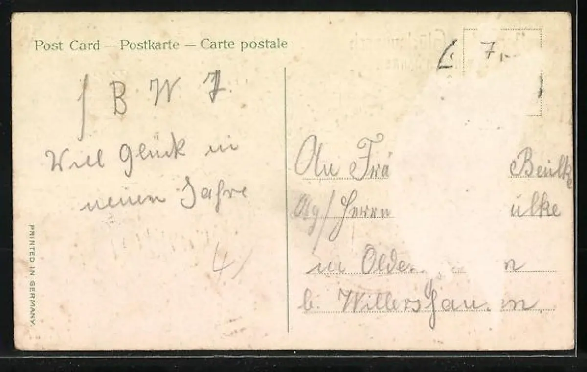 alte Ansichtskarte, ungelaufen, Briefmarke entfernt, rückseitig Oberflächenschaden, guter Zustand