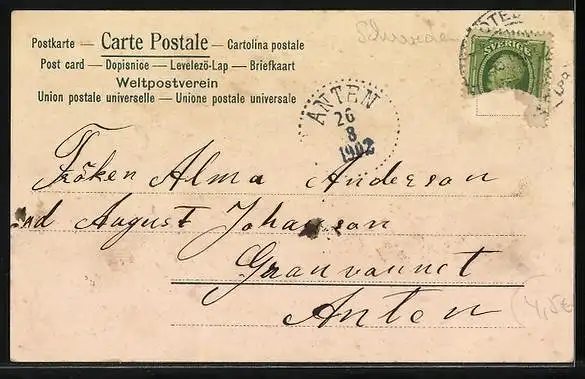 alte Ansichtskarte, gelaufen 1902, Briefmarke entfernt, guter Zustand