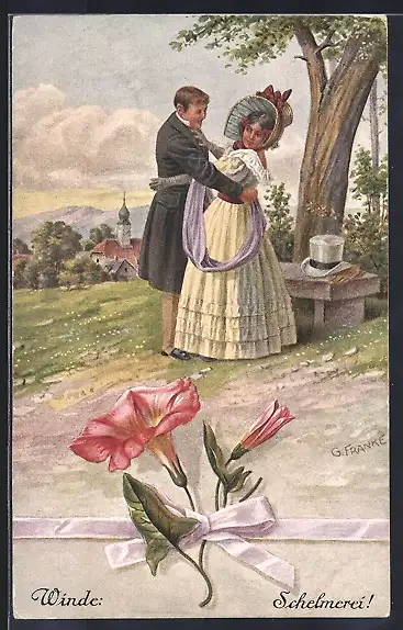 AK Blumensprache, Winde - Schelmerei, Liebespaar