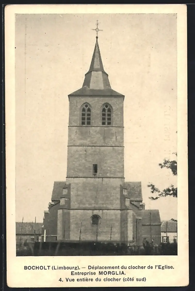 AK Bocholt /Limbourg, Déplacement du clocher de l`Eglise, Entreprise Morglia, Vue entiére du clocher, côté sud