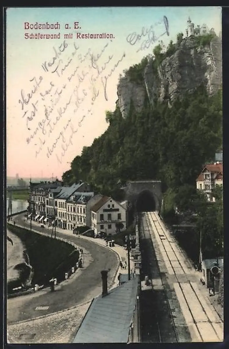 AK Bodenbach a. E., Schäferwand mit Restaurant