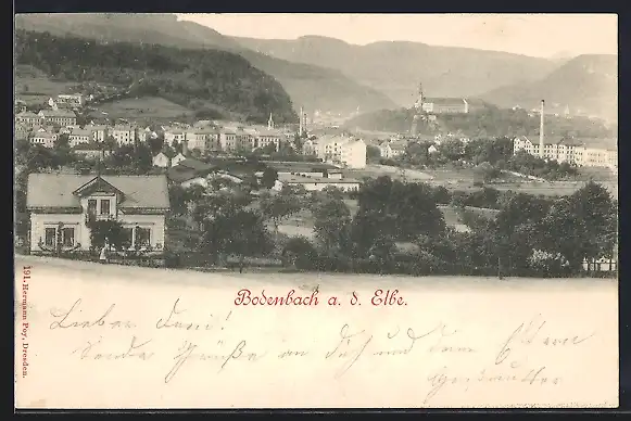 AK Bodenbach a. d. Elbe, Ortsansicht aus der Vogelschau