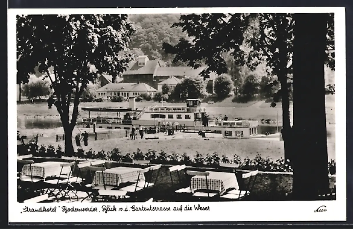 AK Bodenwerder a. d. Weser, Hotel Strandhotel zur Weser mit Gartenterrasse am Personendamfer-Anleger, Inh. Ed. Maneke