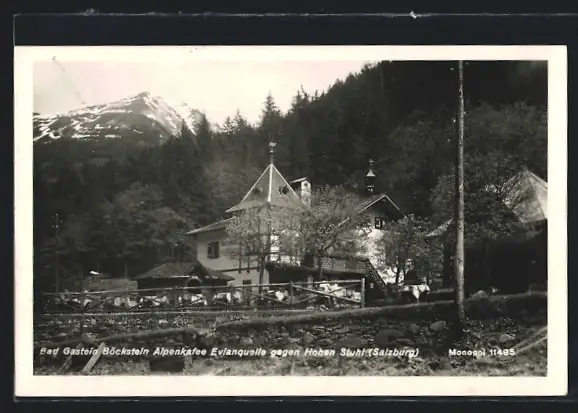 AK Böckstein, Alpencafé u. Restaurant Österreichische Evianquelle gegen den Hohen Stuhl