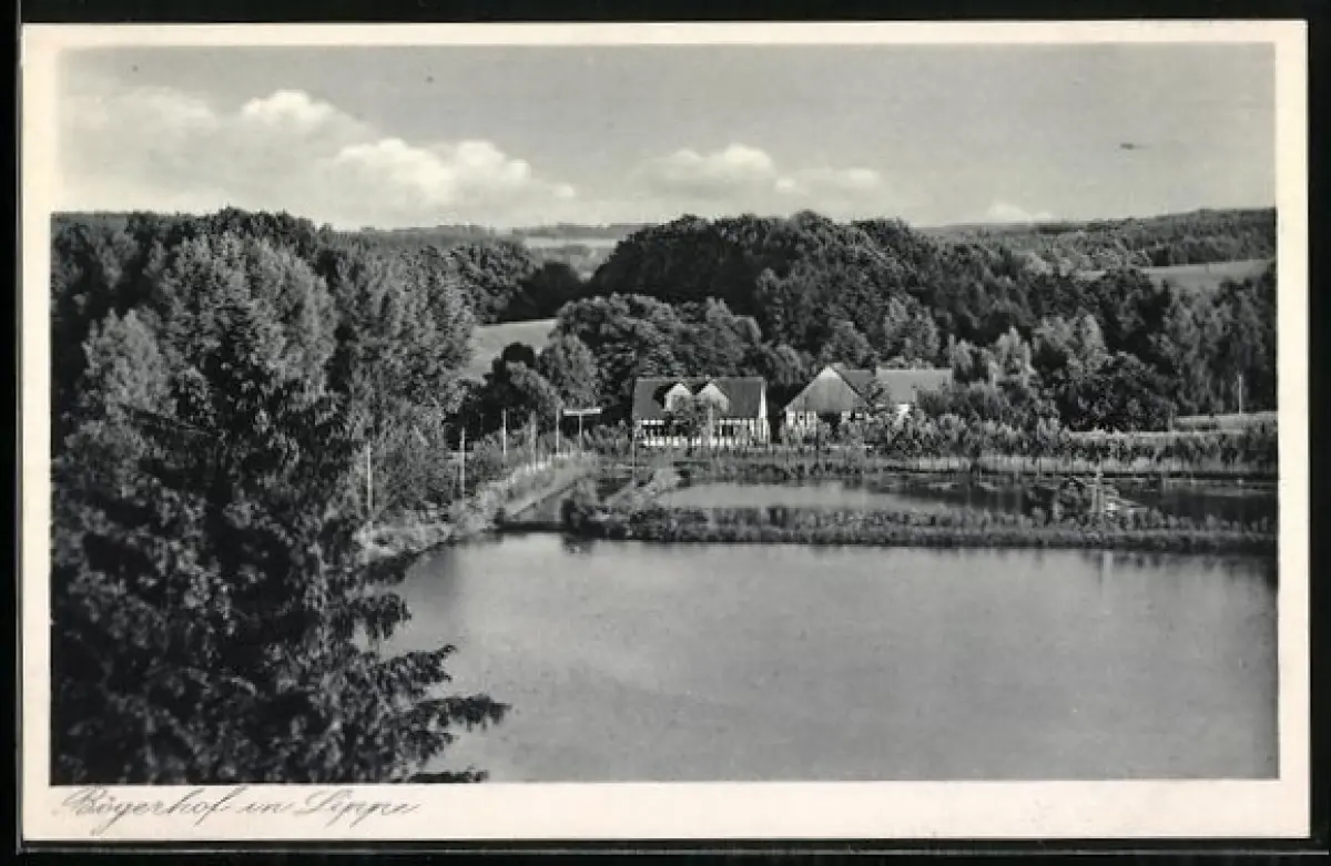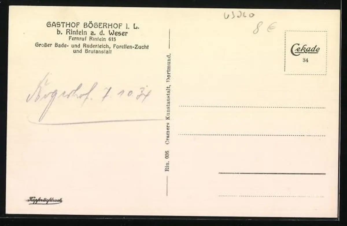 AK Bögerhof in Lippe, Gasthof Bögerhof, im Vordergrund Forellenzuchtteiche