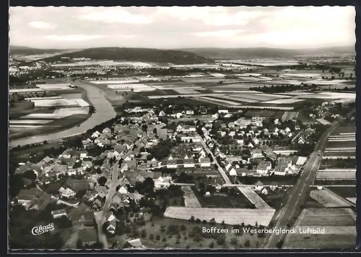 AK Boffzen /Weserbergland, Fliegeraufnahme des Ortes mit Umgebung