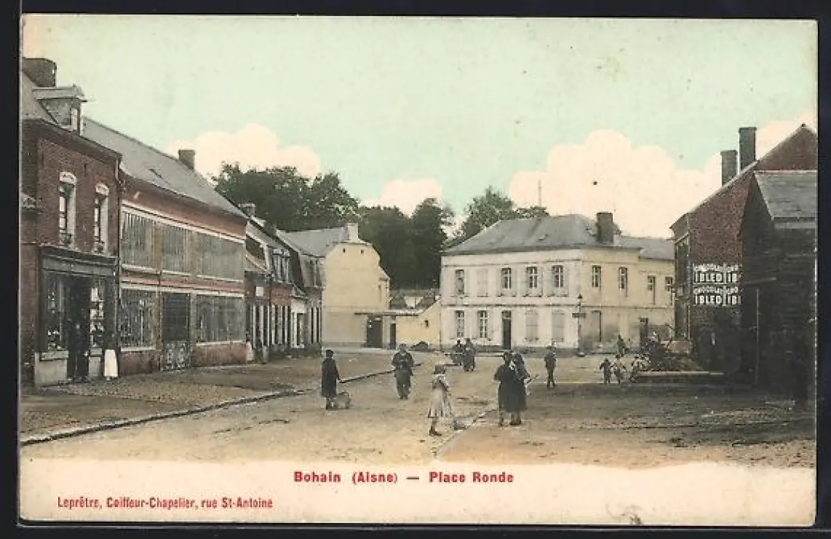 AK Bohain /Aisne, Place Ronde animée avec passants et commerces