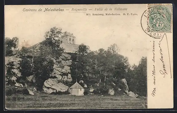 AK Boigneville, Vallée de la Velvette et vue sur le bâtiment sur la colline