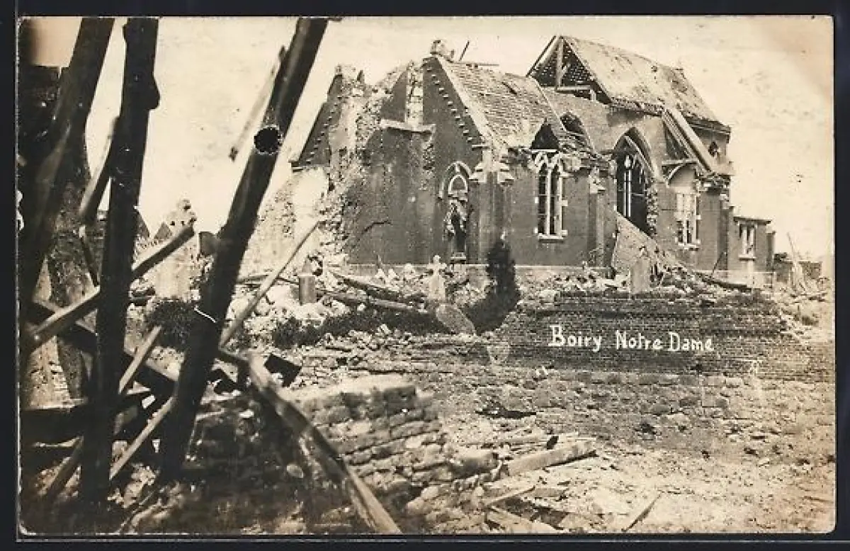 AK Boiry, Notre-Dame en ruines après le bombardement