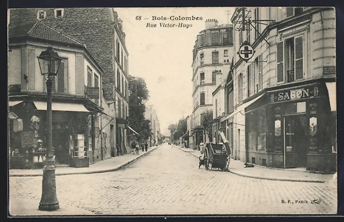 AK Bois-Colombes, Rue Victor-Hugo vue avec commerces et passants