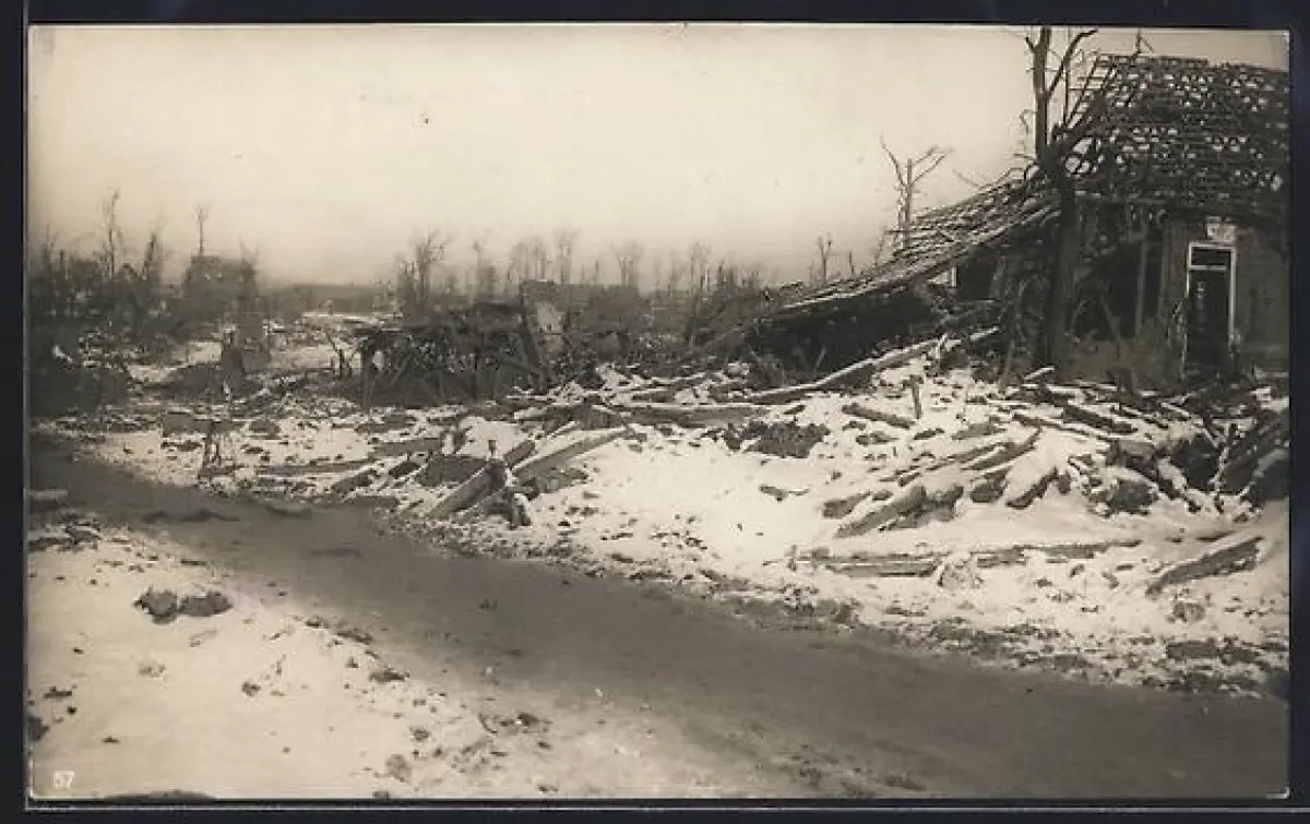AK Boisleux-au-Mont, Ruines enneigées du village après destruction en 1917
