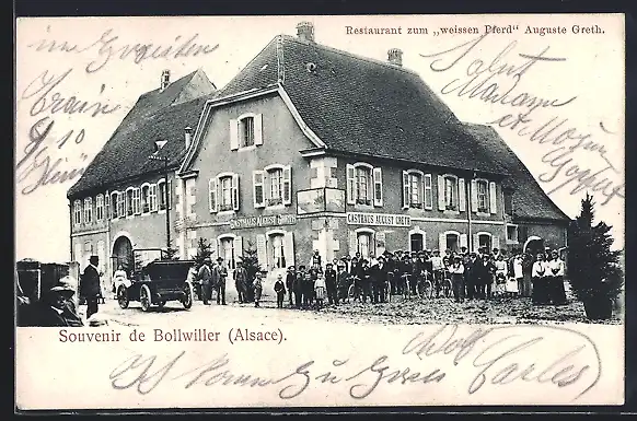 AK Bollwiller /Alsace, Restaurant zum weissen Pferd, Auuguste Greth