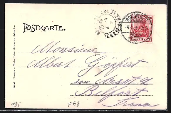 alte Ansichtskarte, gelaufen 1909, guter Zustand