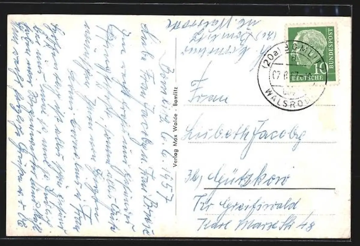 alte Ansichtskarte, gelaufen 1957, Eckknicke links, guter Zustand