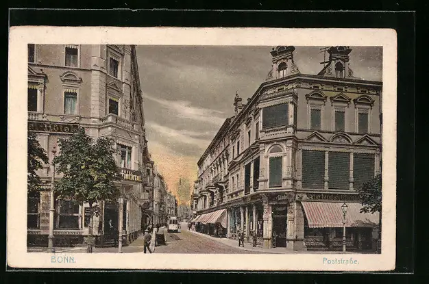 AK Bonn, Partie in der Poststrasse, Strassenbahn