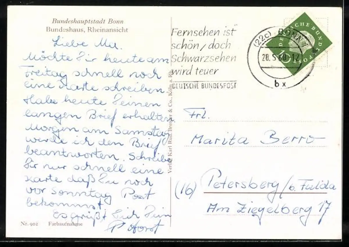 alte Ansichtskarte, gelaufen 1960, Stempelspur, guter Zustand