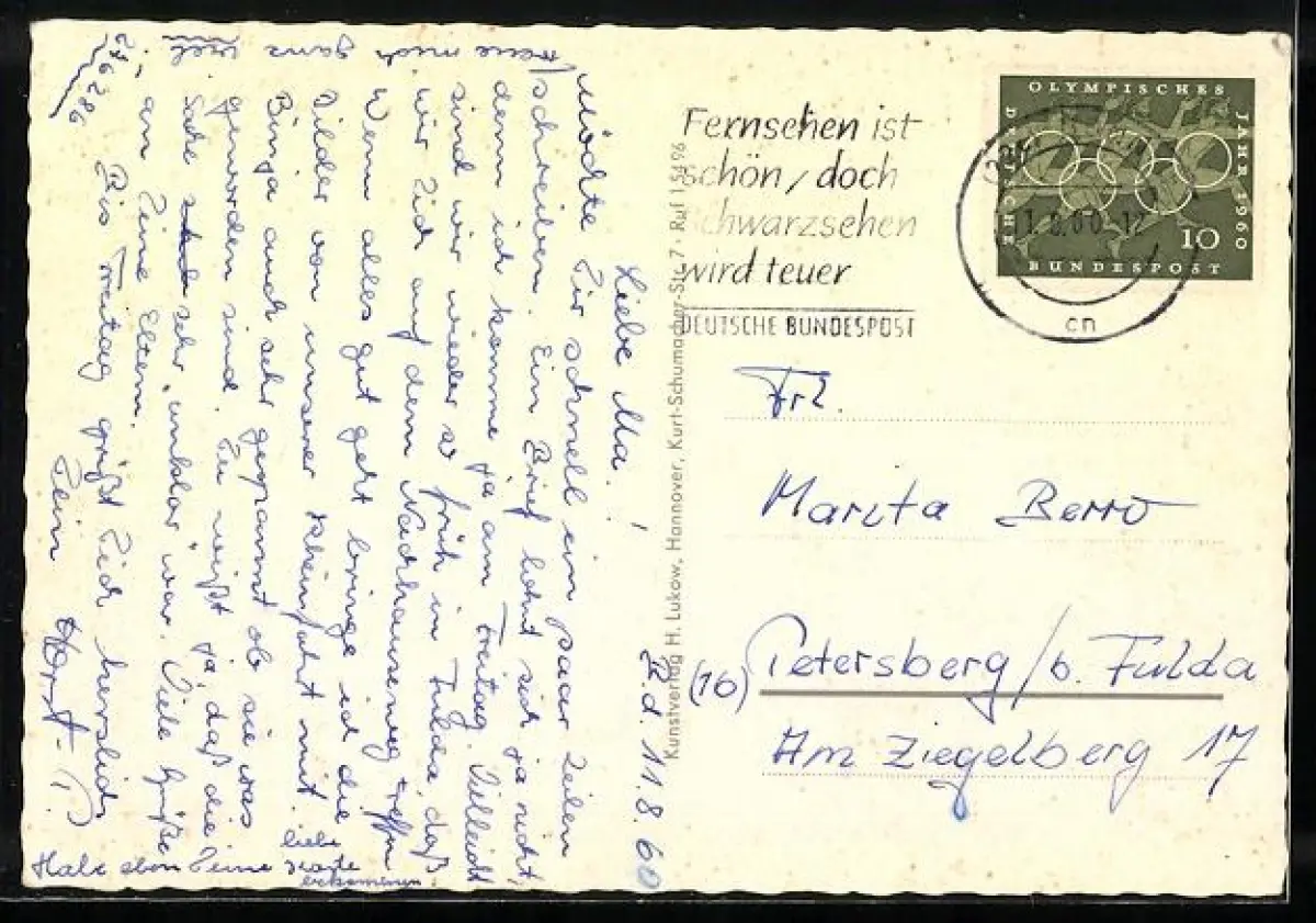 alte Ansichtskarte, gelaufen 1960, Stempelspur, guter Zustand