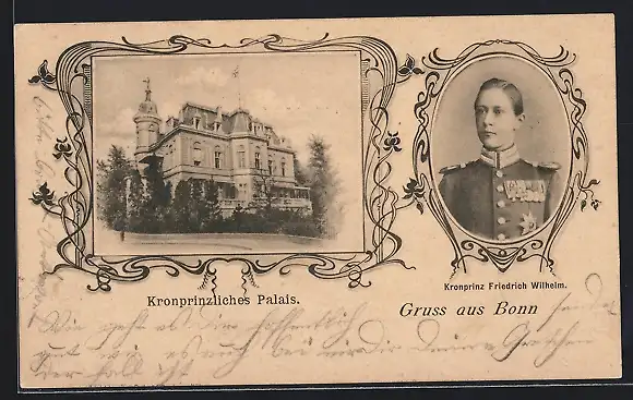 AK Bonn, kronprinzliches Palais, Portrait Kronprinz Wilhelm von Preussen in jungen Jahren