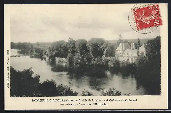 AK Bonneuil-Matours, Vallée de la Vienne et Château de Crémault, vue prise du côteau des Billarderies