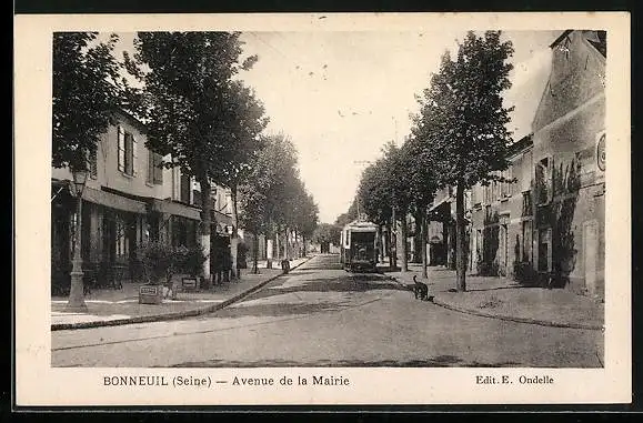 AK Bonneuil /Seine, Avenue de la Mairie, Strassenbahn