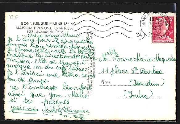 AK Bonneuil-sur-Marne, Facade du Café-Tabac Maison Prevost avec clients en terrasse